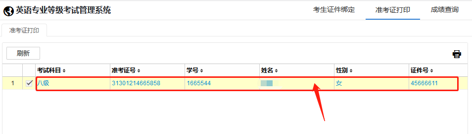 3. 点击准考证打印。