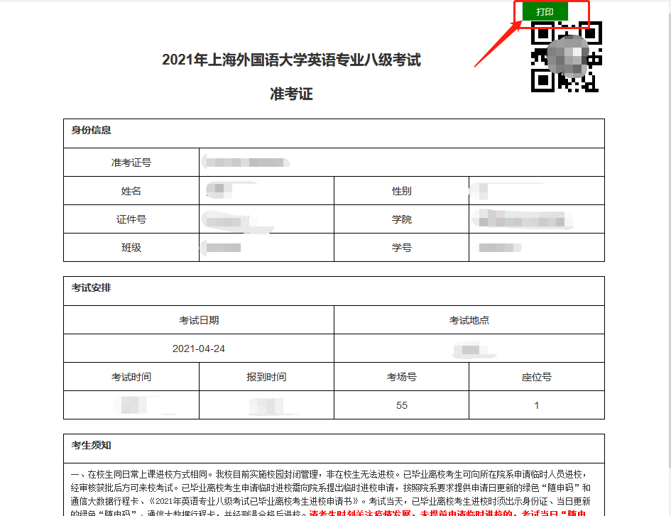 考试当天,已毕业离校考生进校时须出示身份证、当日更新的绿色“随申码”、通信大数据行程卡,并经测温合格后进校。