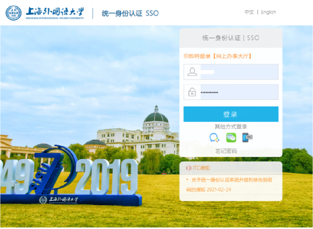 1.在校生点击以下链接,通过统一身份认证平台登录。
