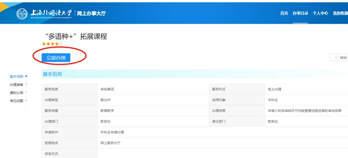 2.点击业务部门【教务处】——【“多语种+”拓展课程】;