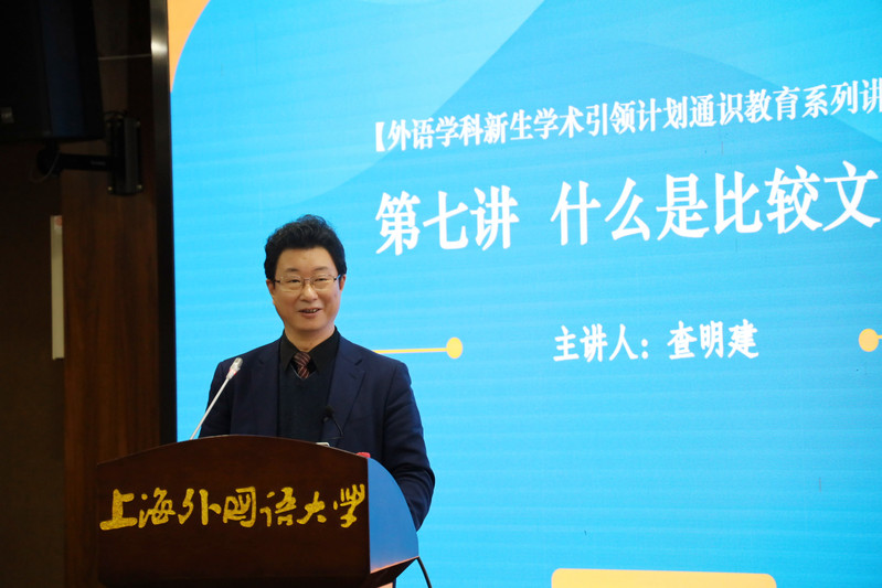 为实现我校“会语言、通国家、精领域”的人才培养规格,帮助外语学科新生从一开始就了解本学科的知识体系和研究领域,提升外语能力,掌握基本的开云电竞官网下载方法,学校特邀请资深学者举办“外语学科新生学术引领计划”通识教育系列讲座。2021年12月24日,第七期外语学科新生学术引领计划通识教育系列讲座在上外松江校区成功举办,查明建教授为大家分享:什么是比较文学。讲座由日本文化经济学院院长高洁教授主持。