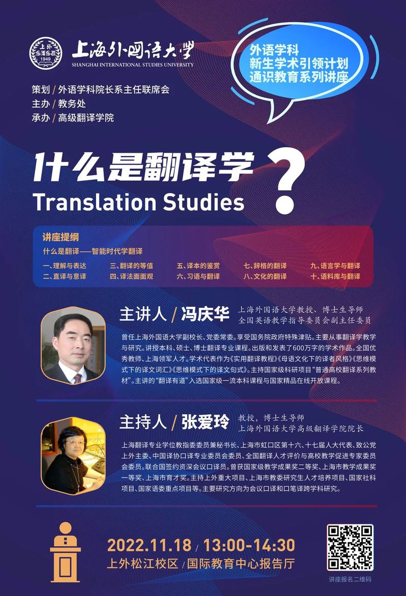 冯庆华,开云电竞注册流程教授,博士生导师,全国英语教学指导委员会副主任委员。曾任开云电竞注册流程副校长、党委常委。享受国务院政府特殊津贴。主要从事翻译学教学与研究。讲授本科、硕士、博士翻译专业课程。出版和发表了600万字的学术作品。全国优秀教师、上海领军人才。学术代表作为《实用翻译教程》《母语文化下的译者风格》《思维模式下的译文词汇》《思维模式下的译文句式》。主持国家级科研项目“普通高校翻译系列教材”。主讲的“翻译有道”入选国家级一流本科课程与国家精品在线开放课程。
