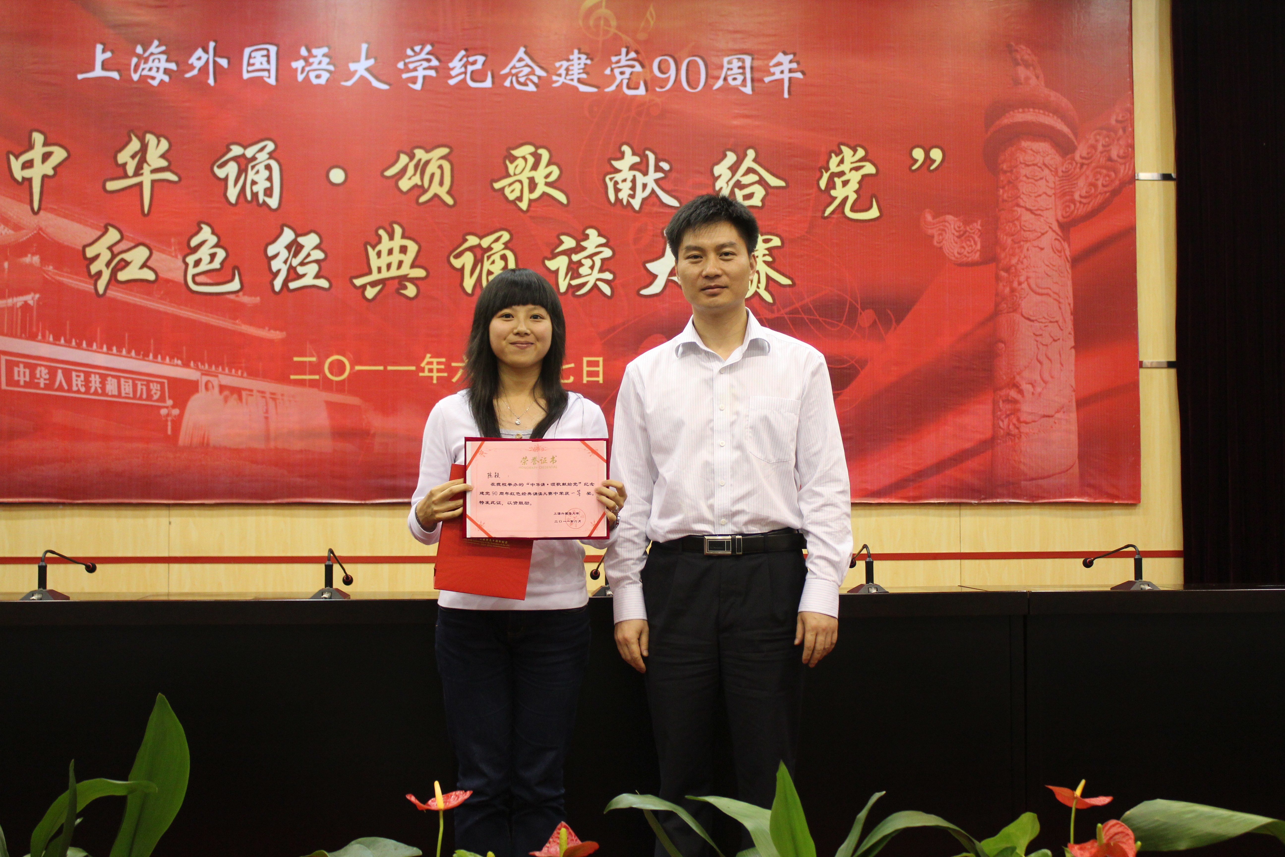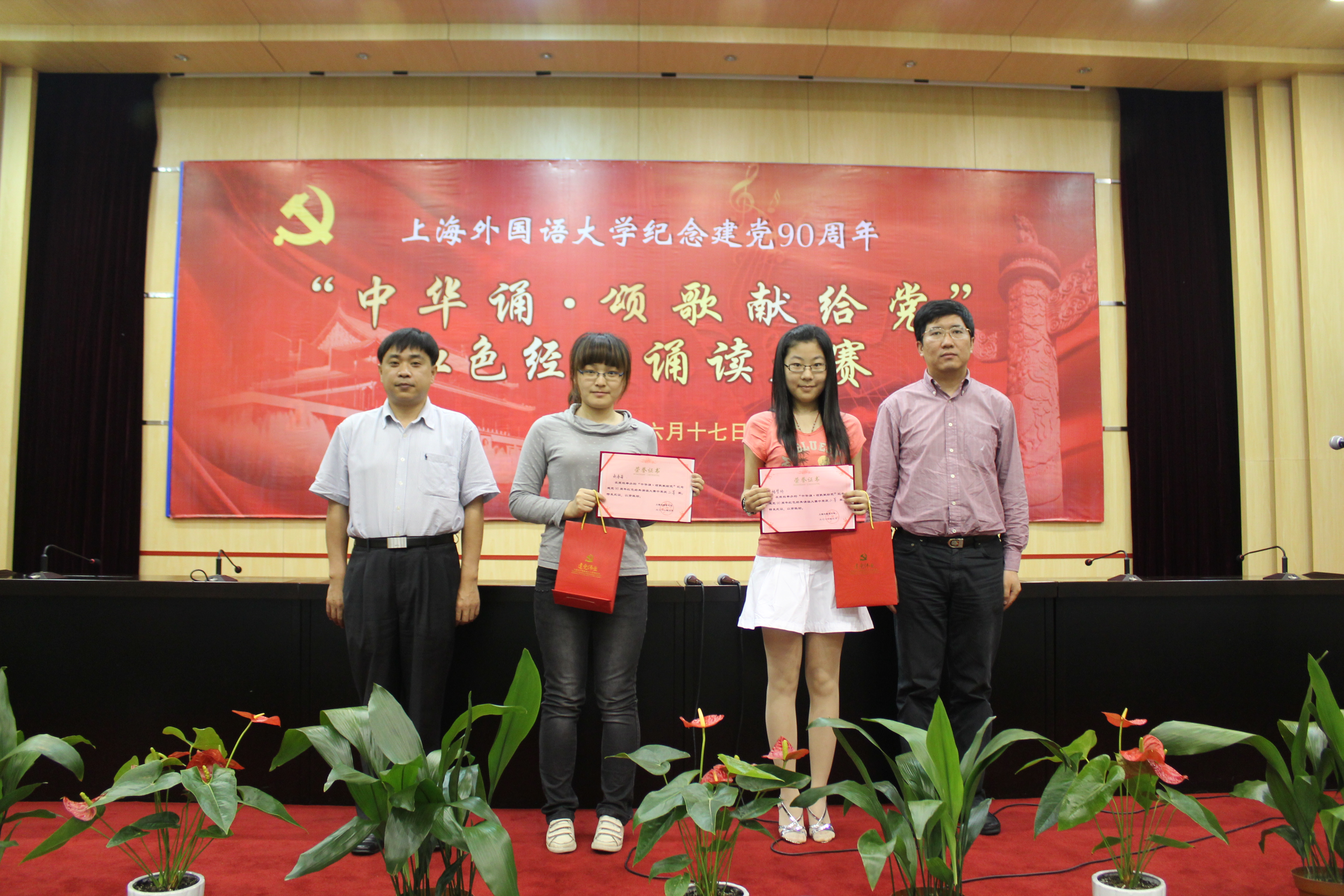 纪念建党90周年“中华诵·颂歌献给党”红色经典诵读大赛于2011年6月17日(周五)下午13:00在我校虹口校区会议中心第一报告厅举行。本次大赛由校语言文字工作委员会主办,副校长冯庆华、张峰、杨力、周承以及校语委全体成员和院系教师、学生代表出席观摩了大赛。来自各院系、机关部处的19组教师和学生选手饱含深情的诵读向我们展示了我党90年的光辉历程和不朽业绩。