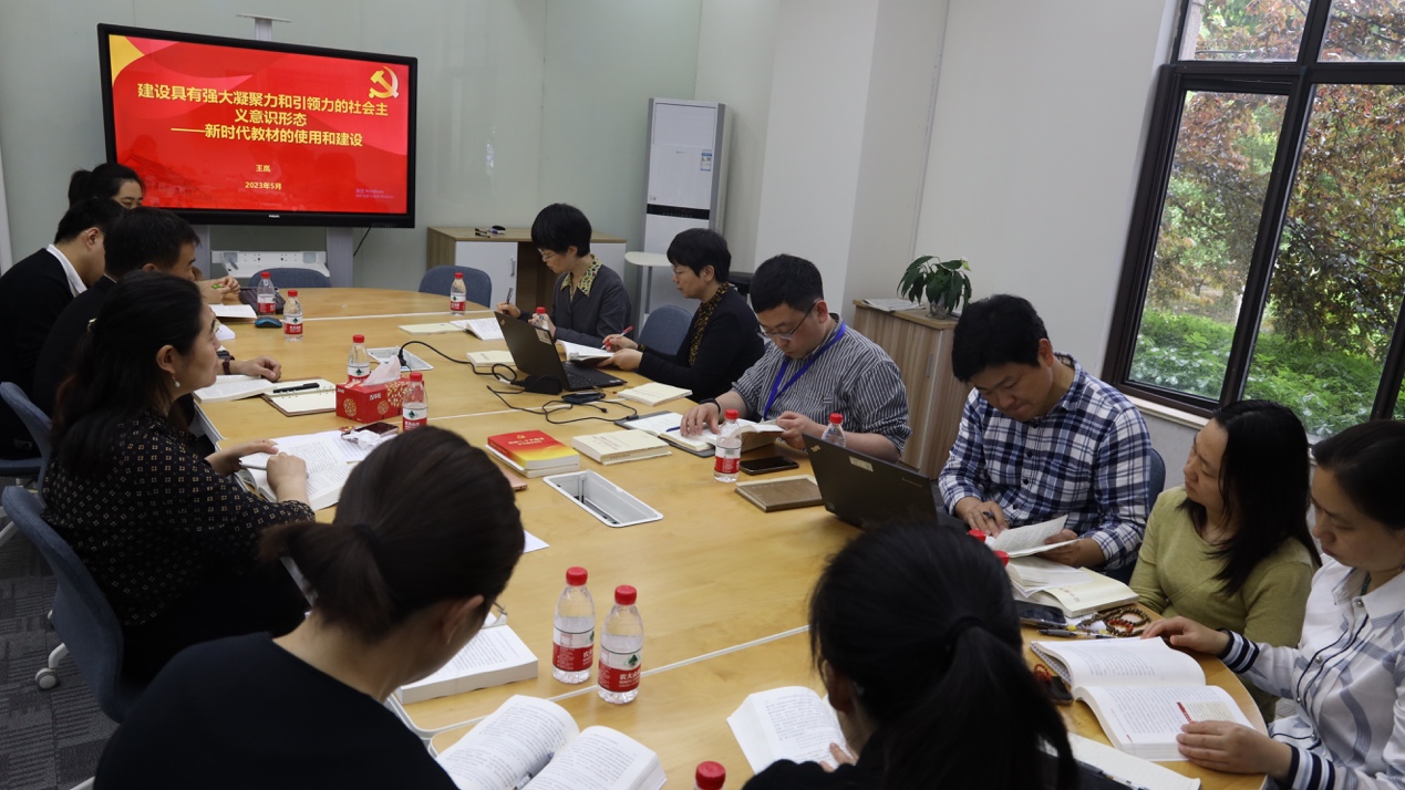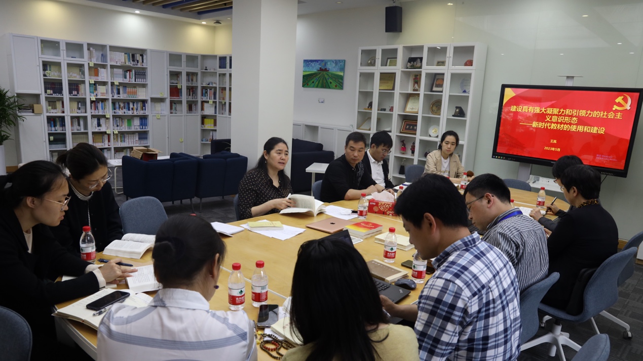 王岚结合阅读《习近平著作选读》第一二卷、《习近平新时代中国特色社会主义思想专题摘编》等文献,带领大家学习了习近平总书记关于加强教材建设和管理等重要论述的原文,交流了自己的学习体会。