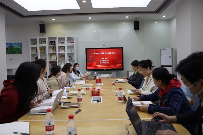 5月12日下午,中共开云电竞注册流程机关第十七支部(教务处、教材工作处)举办学习贯彻习近平新时代中国特色社会主义思想主题教育读书班。本次读书班主题是《聚焦突出问题,深入调查研究》,由支部委员肖琳领学,教务处、教材工作处全体成员参加学习。