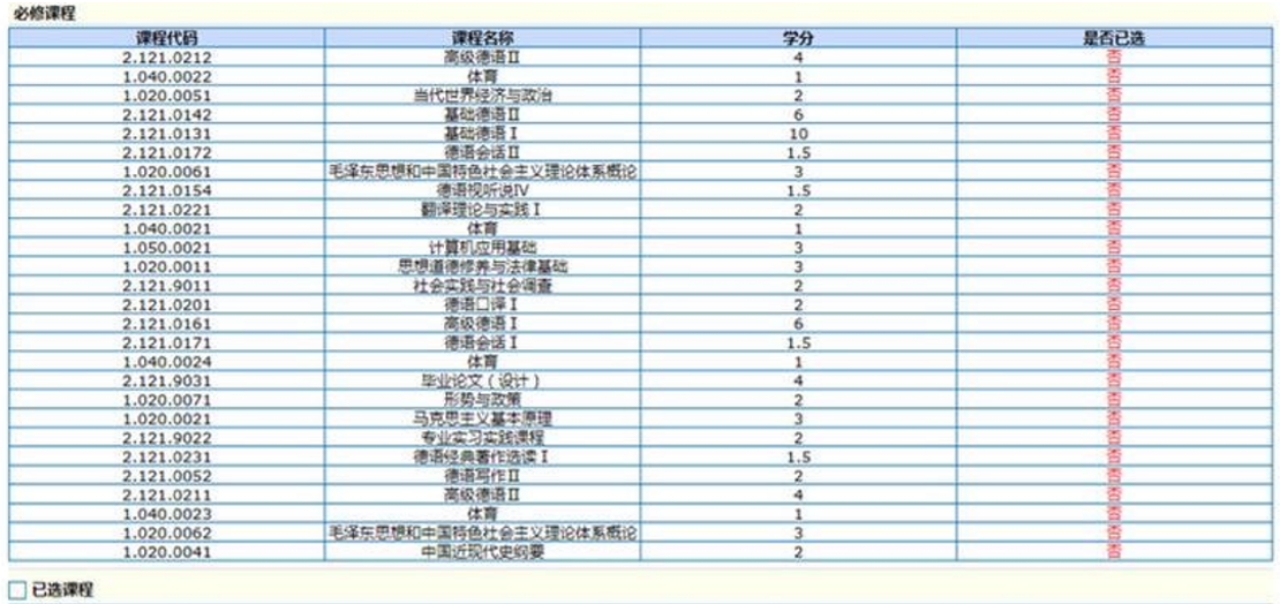 选课过程中,可查询“必修课建议列表”,防止漏选: