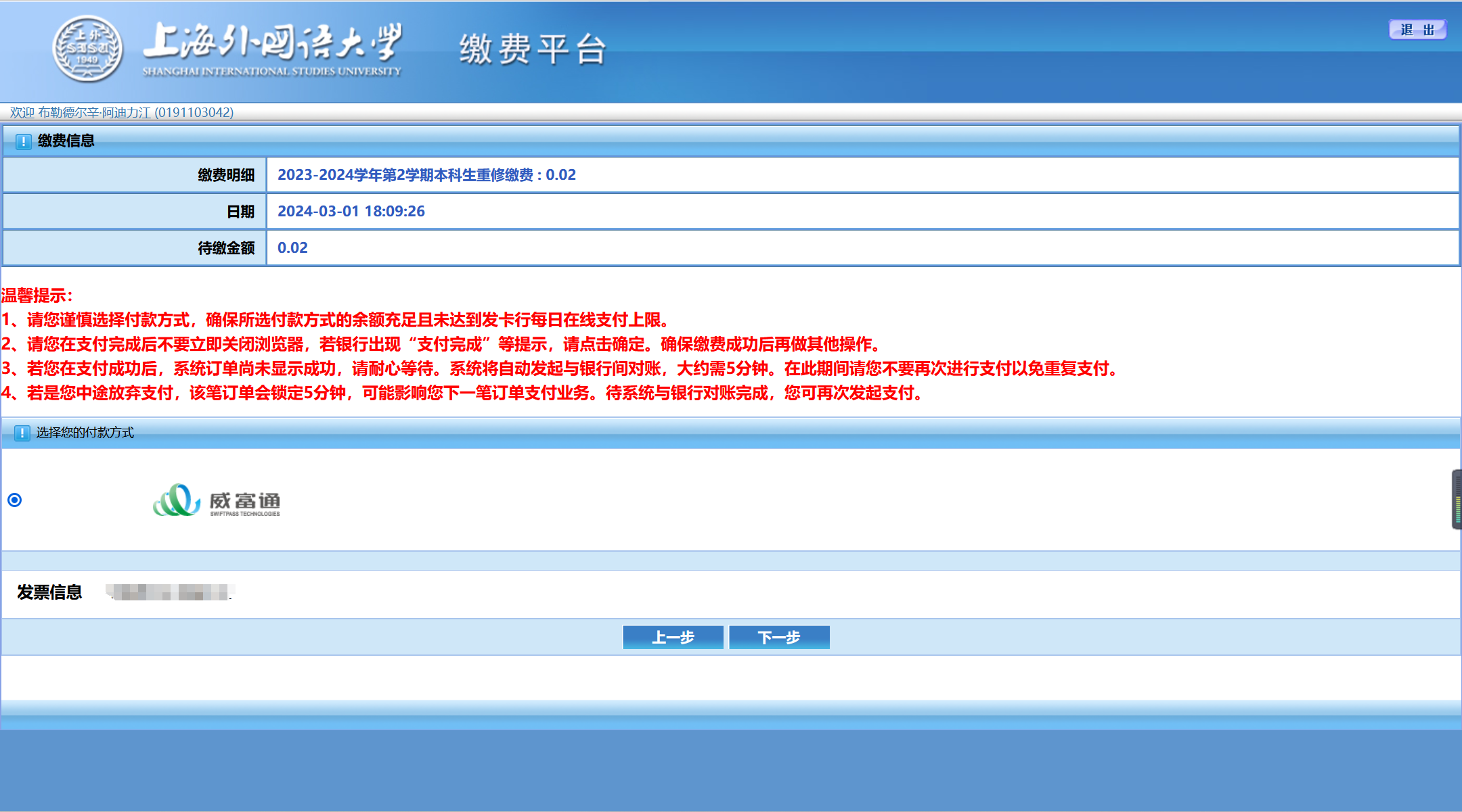 第一步,点击进入,查看已选重修课程的应缴金额;