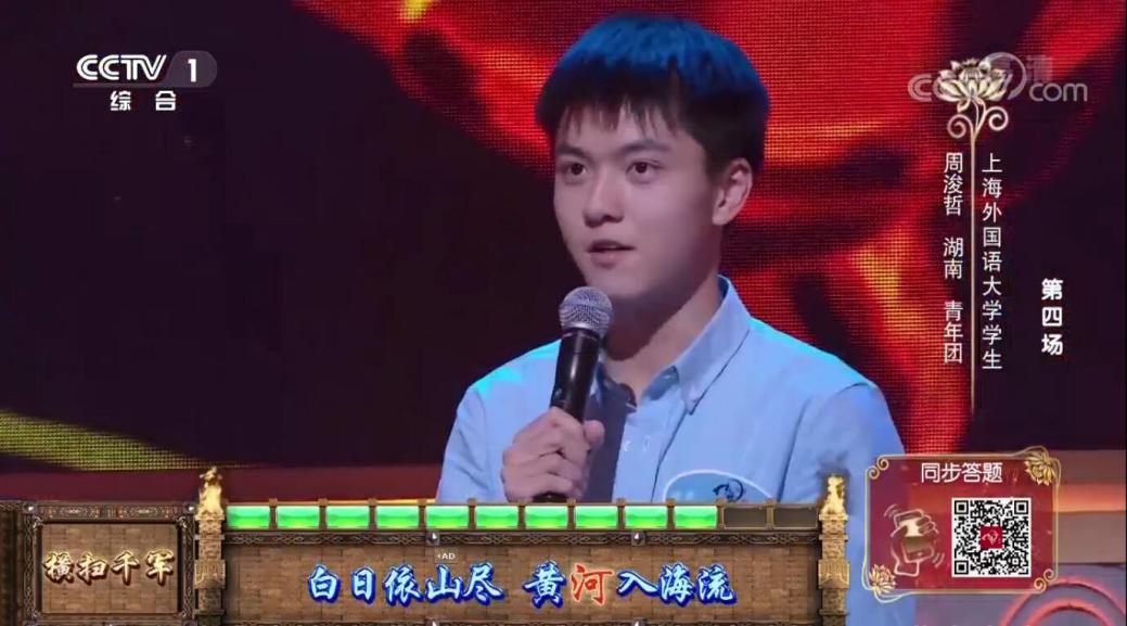 图1:周浚哲亮相央视《中国诗词大会》(来源:《中国诗词大会》第四季第四场)