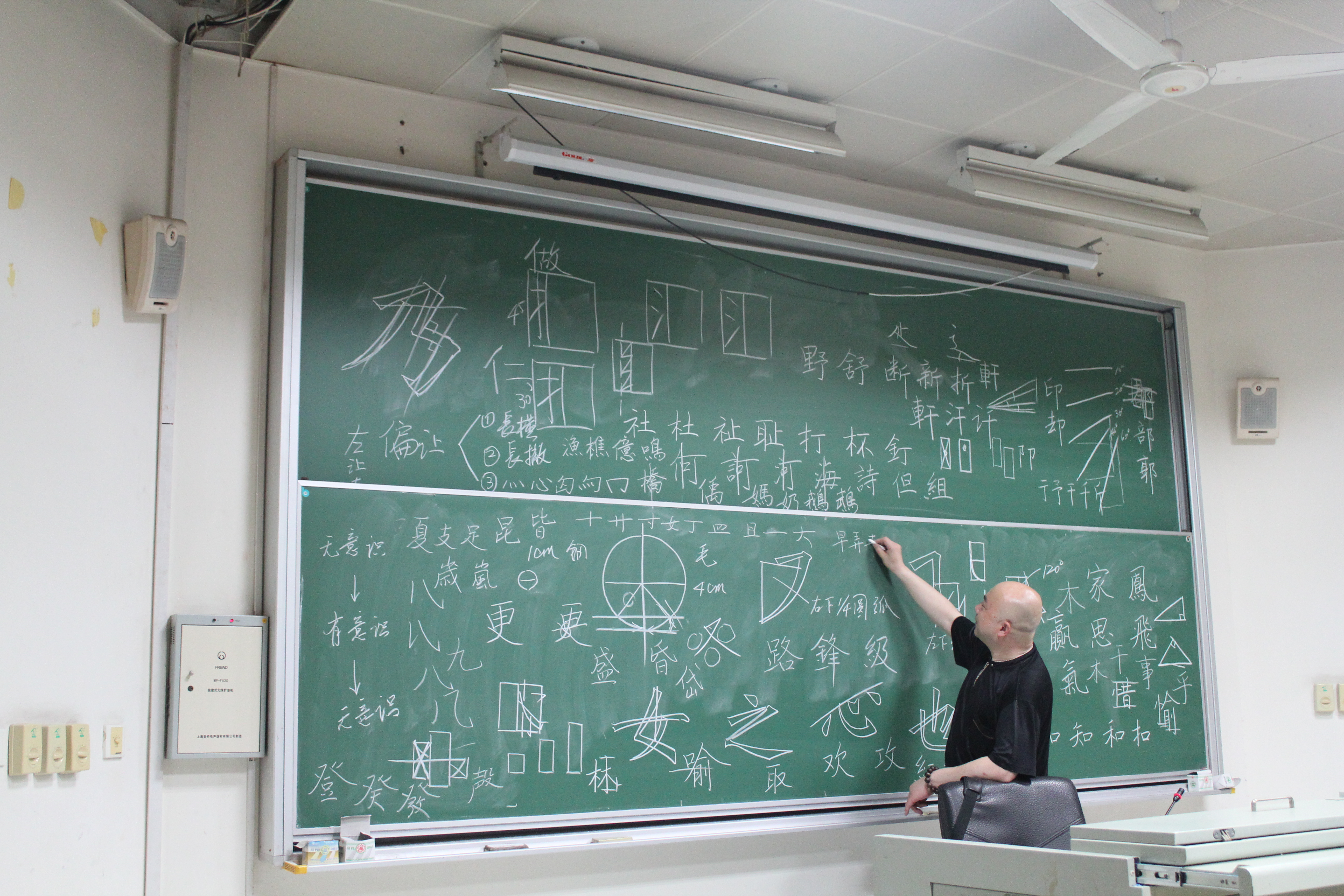 陆老师首先简要介绍了他的两名学生(其中一名是我校德语专业毕业生)学习书法的情况,以及书法在他们人生重要阶段产生的影响,以此为例说明了书法艺术的魅力所在,鼓舞同学们练习书法,调动同学们学习书法的积极性。 陆老师用诙谐幽默的语言,浅显易懂的形式讲解了楷书的结构规律。他说:“楷书如同一个人坐着,行书如同一个人在走,那么草书如同一个人在跑,因此楷书要注重稳。”在楷书书写上,陆老师特别强调结构。他告诉上外学子们,练习书法注重的汉字各个零件的联系。他通过图形和各种角度的讲解,让学子们能够比较容易的理解楷书的书写方式,把平面几何、立体几何的概念融入到楷书的书写结构中,让同学们通过画圆来解决楷书书写过程中比较难以解决的各种带有弧度的笔画。 另外陆老师还详细讲解了汉字的构造,以及不同的结构在楷书书写时注意事项其中着重讲解了左右结构和上下结构。全方位阐述汉字楷书的书写规律,用正方、短长方、长方的概念来演示汉字楷书的书写。例如他说到正方结构的如果在汉字的左边,应该放在左上方,如果在汉字的右边,应该放在右下方,短长方结构的应该居中书写,用具体的角度概念来诠释汉字楷书书写过程中各种笔画的位置,通过天覆地载、偏让出头、伸手收脚、伸脚收手等形象化的概念让上外学子理解汉字楷书书写的精髓。 最后,陆老师和在座的学生进行互动中普及了一些书法知识,比如中国目前的书法流派,有古典派、学院派、现代派,他解释了这些书法流派的书法作品的呈现形式,并举例说明。另外陆老师还给同学们讲解了一些关于日本书法的一些知识,并对中国书法与日本书法进行了比较,简单介绍了日本在书法方面的成就和呈现真迹方面的先进技术。陆老师还给在场的每一位同学亲笔签发了一本字帖。 通过这场讲座,上外学子们进一步了解了书法作为中国传统文化、民族瑰宝的艺术魅力,以及传承这种文化所肩负的责任。 |