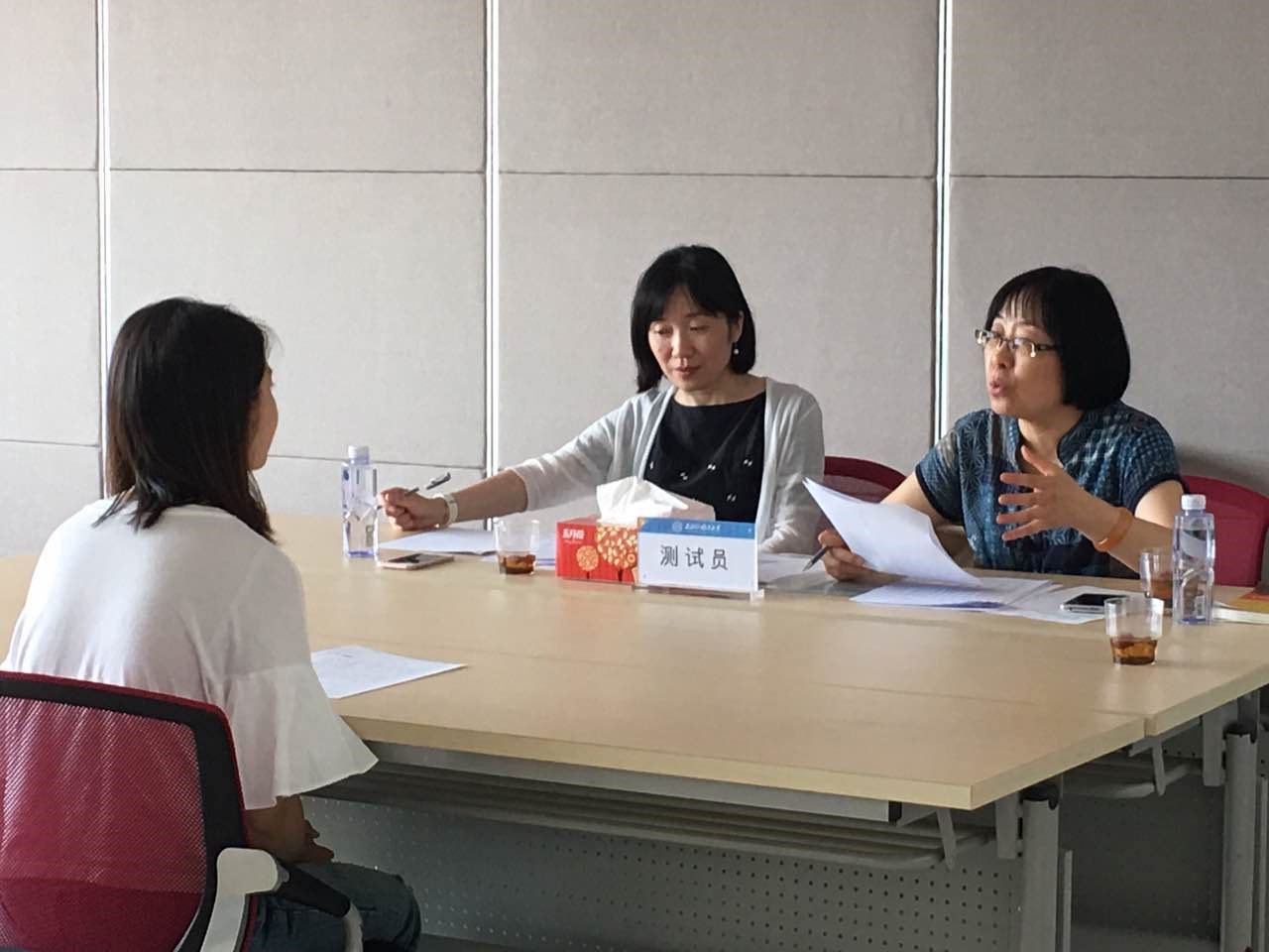 与传统的“回家等成绩”模式不同,本次模拟测试的成绩是即时评定反馈的。语测专家在学员完成模拟测试后,当场对学员的测试水平进行打分,并对学员的测试情况做出点评。在给予充分肯定和鼓励的同时,也针对不同学员的特点逐一点拨,并给出建议。