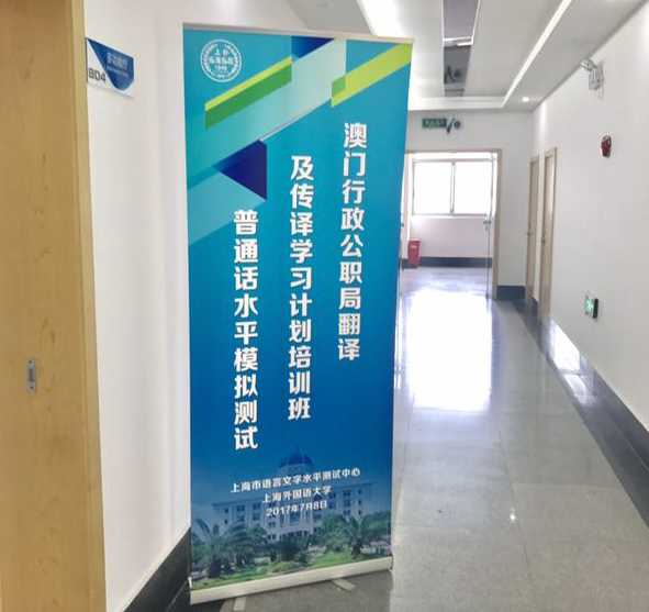 2017年7月8日上午,“澳门行政公职局翻译及传译学习计划培训班”学员普通话水平模拟测试专场在我校虹口校区成功举行,共有13名来自澳门的培训学员参加了本次测试。