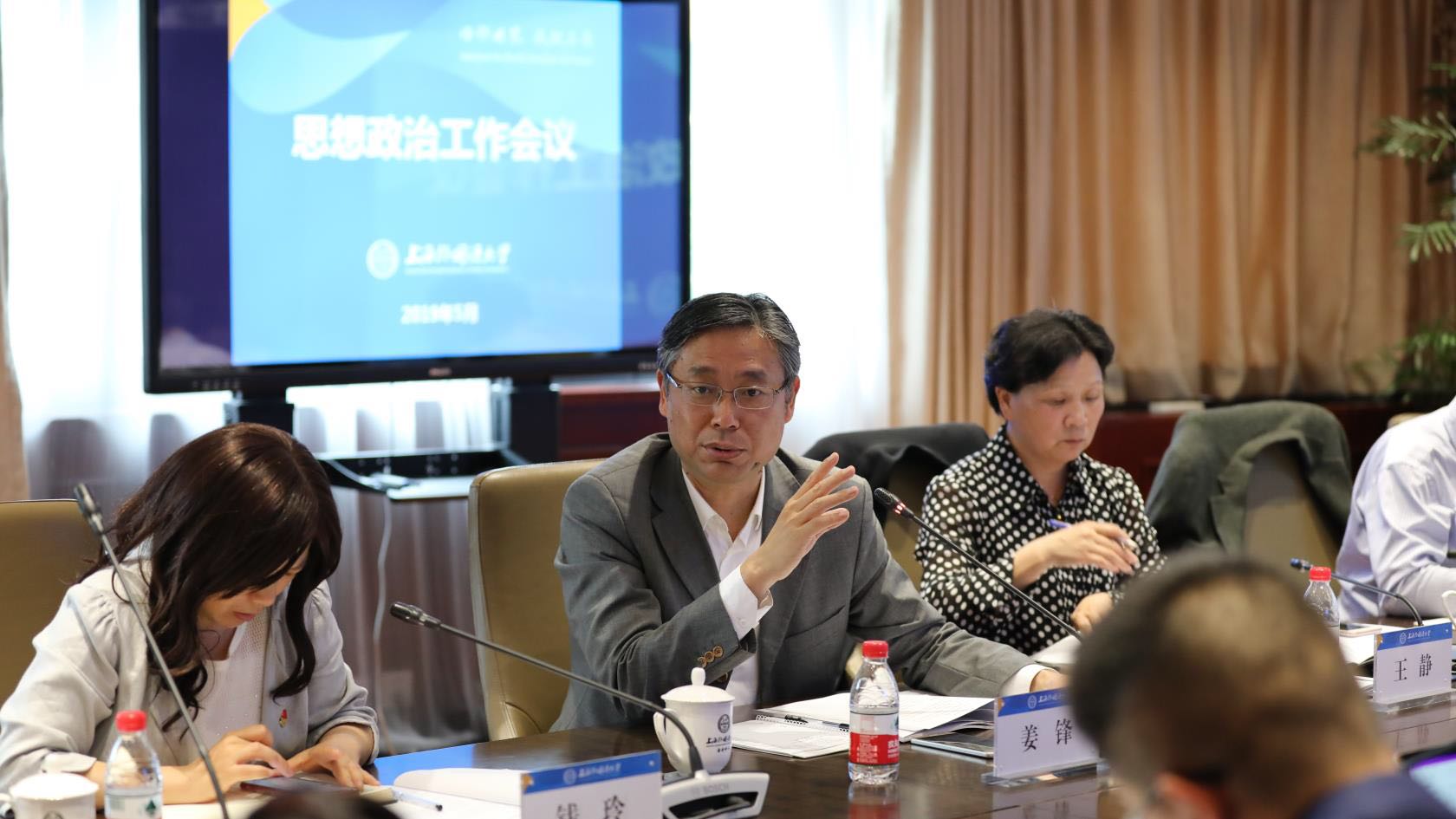 王静部署了本年度学校思想政治工作要点,深入学习贯彻习近平新时代中国特色社会主义思想,围绕立德树人根本任务,突出学生为本,提升人才培养能力和水平,从根本上解决“两张皮”问题,推动党建、思政工作和“双一流”建设、学科专业质量建设、人才队伍建设、教学科研工作等有机融合,构建外语院校特色思想政治工作体系;结合“双一流”建设攻坚年、内部治理年、校庆年积极建设一流思政工作。