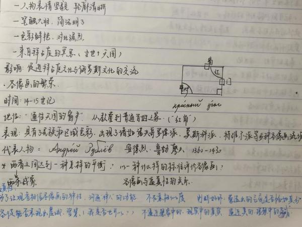 张煦老师为了让同学们加深对俄罗斯圣像画的空间架构的认识,在艺术鉴赏的课程中穿插着科学理,她还特地绘制了两张加以辅助线的对比图帮助同学理解,:“乍看圣像画有一些不习惯,是因为平时我们接触得多的是正透视法,以人眼看世界;圣像画采用的是反透视法,是神的视角,由高处俯视人间。”