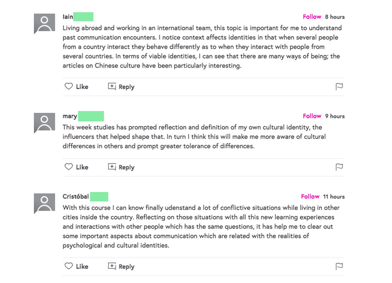 Over the past 8 runs, nearly 30,000 learners have engaged with each other through course videos, readings, exercises, and discussions (providing over 100,000 insightful comments)! Much learning occurs through reflecting on the diverse responses of other world-wide learners. By actively posting comments and replies, each learner enhances their intercultural understanding and competence.