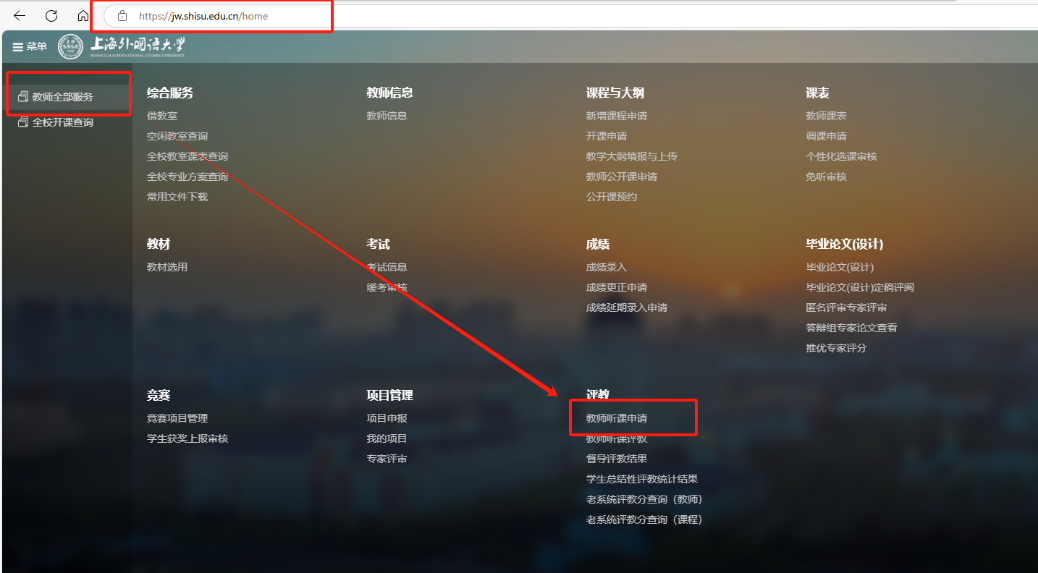 请在新版教务系统(https://jw.shisu.edu.cn/home)进行申请,本学期听课申请截止时间为3月14日(周五),教务处将统一安排专家听课。如有问题,可致电67708063咨询。