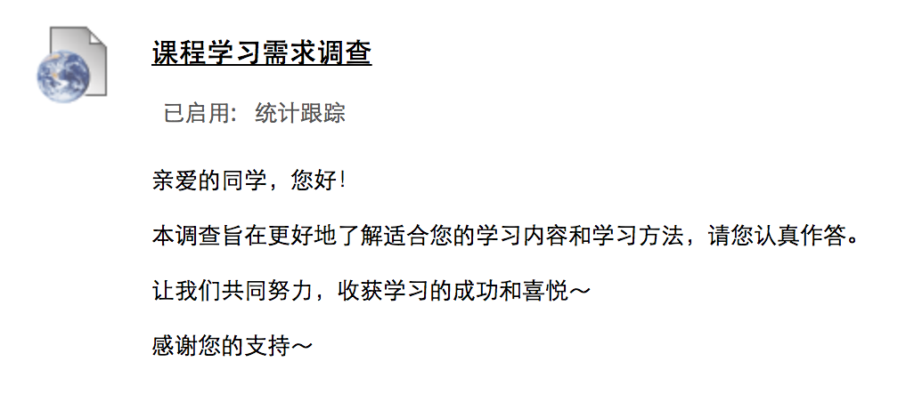 例如,为了更好地了解同学们的在线学习需求,我在教学第一周便进行了一项“在线课程学习需求”调查,针对“你愿意参与的教学方式或教学手段有哪些?”排在前三位的是:观看视/音频学习材料(87.5%),做选择题(87.5%)和做抢答题(62.5%)。这些调研信息可以对后续如何设计教学活动和激发学生学习动机提供很好的借鉴与参考。