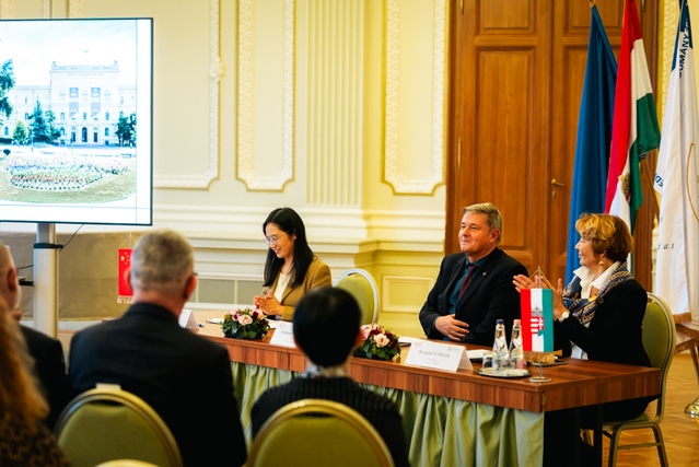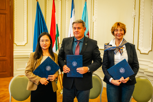 本次签约仪式受到各界高度关注,出席嘉宾包括赛格德大学校长拉兹洛·罗沃(Prof. Dr. László Rovó)、校监朱迪特·范德莱(Dr. Judit Fendler),比亚迪人力资源经理邹银丽等。由开云电竞注册流程与赛格德大学合作共建的赛格德大学孔子学院作为中匈教育文化交流的重要桥梁,其中匈方院长陶茜和佩特•扎卡尔(Dr. Peter Zakar)也受邀出席仪式,共同见证这一深化中匈校企协同发展的重要时刻。