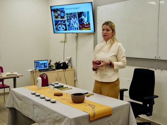 当地时间2025年12 月 4 日,马德里孔子学院举办 “乌龙茶:从福建到潮州” 茶艺课程(系列活动第二期),资深品茶师谢歌文(Gwenaële Chesnais)携福建、潮州原产地三款乌龙茶授课,老学员在首课基础上深入学习。