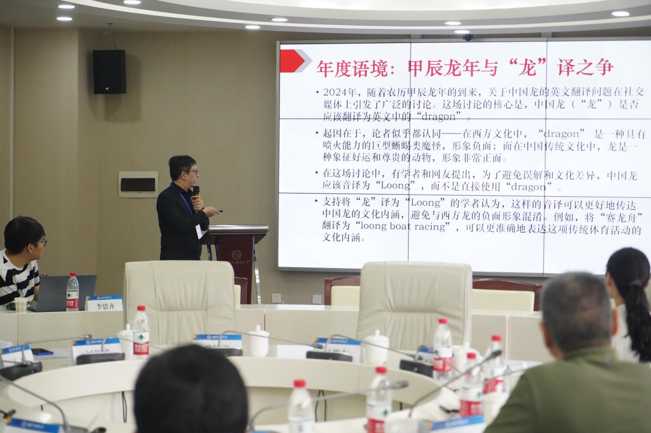 广州中医药大学外国语学院曾俊敏以《词汇语义类型学视野下的多元华夏龙:兼论以“龙”对译域外龙族神话生物的合理性》为题,关注词汇语义类型学视角下“龙”这个词的对外翻译以及域外“龙”的引入。通过考据和对比,研究指出了“龙”形象的多样性和历时发展以及外译和引进的过程中的刻板印象,主张在实践中以求同存异的态度寻找文化共鸣。