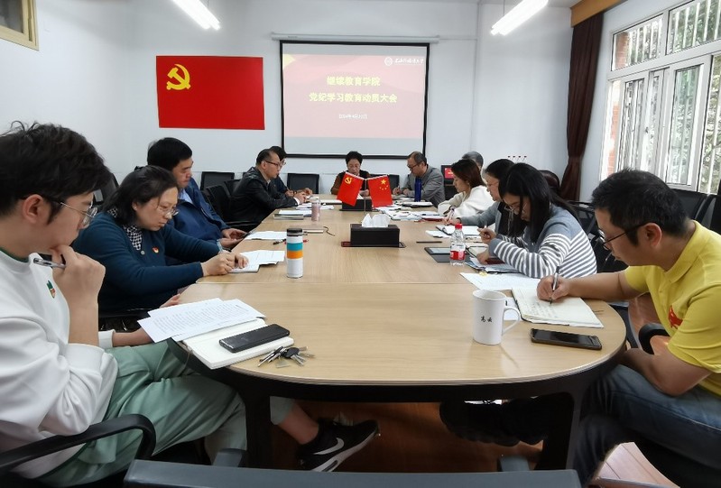 4月22日下午,继续教育学院召开党纪学习教育动员会,学院领导班子、各部门负责人及教工党支部书记参加。会议由学院党总支副书记曹铮主持。