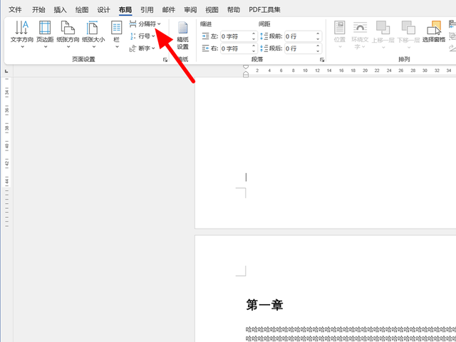 2.在【布局】选项下点击【分隔符】选项。