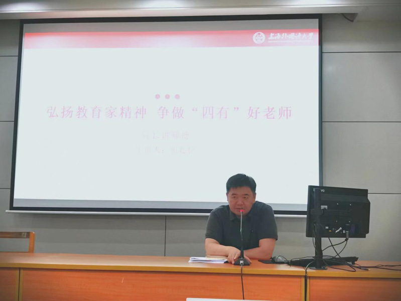 7月3日,继续教育学院开展“院长讲师德”专题教育活动,院长张廷佺以“弘扬教育家精神,争做‘四有’好老师”为主题给全院教职工上了一堂生动的师德师风教育课。