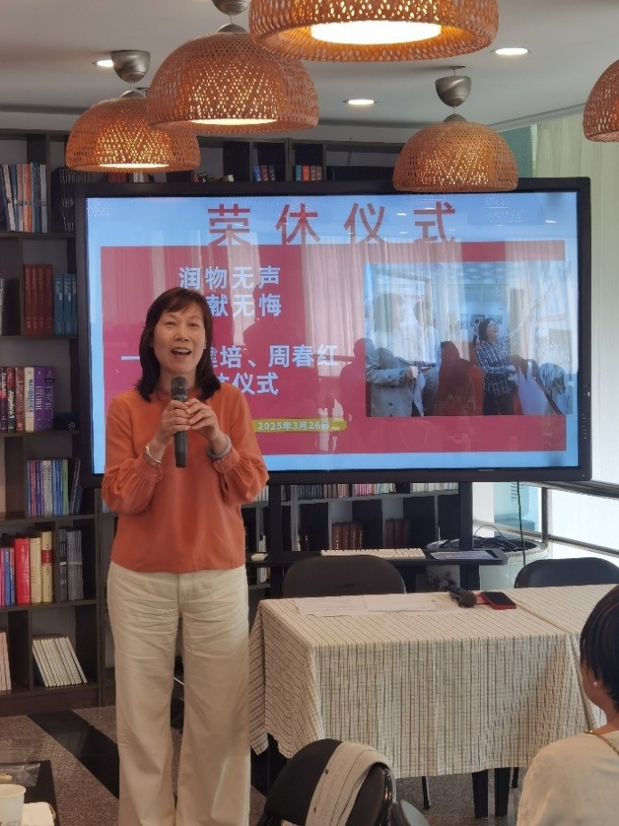 党总支书记吴慧代表学院党政领导班子向两位荣休老师表达了由衷的敬意,对他们为学院发展作出的贡献表示感谢。她指出,两位老师坚守“为党育人,为国育才”的初心使命,是学院发展的实干家,他们的宝贵经验和无私奉献精神是我们学习的榜样和前行的力量。学院举办本次荣休仪式,既是对两位老师数十载耕耘的礼赞,也是一次继往开来的精神接力。青年教职工一致表示,将以两位老师为精神标杆,主动接过育人火炬,以躬身入局的担当精神和数字赋能的创新实践,在服务学习型社会建设中展现新作为,在新时代教育事业的广阔舞台上踔厉奋发、勇毅前行。