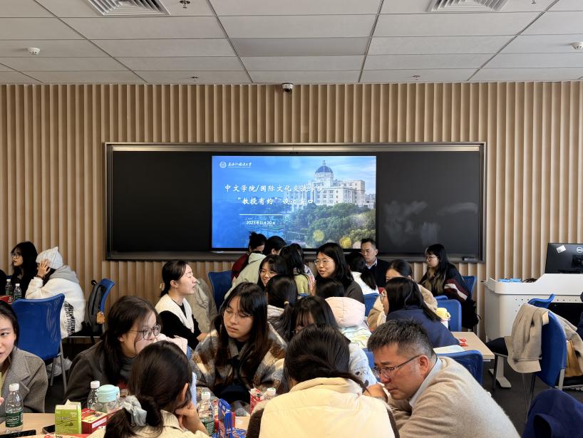 11月20日中午,作为中文学院/国际文化交流学院“本科教学质量月”系列活动之一的“教授有约”谈心窗口活动在松江校区全球治理与区域国别大楼416室顺利举行。院长陈昌来,副院长朱建军、陈灼芬,教师代表郭丽、郝瑜鑫、刘云、杨彬、张秋杭、张煜、郑瑜出席此次活动,活动得到各年级本科生的积极响应。本次活动旨在打破课堂教学的边界,为师生搭建更自由、坦诚的沟通平台,让教授们走下讲台、走近学生,在对话中增进彼此了解,传递学院的关怀与温度。