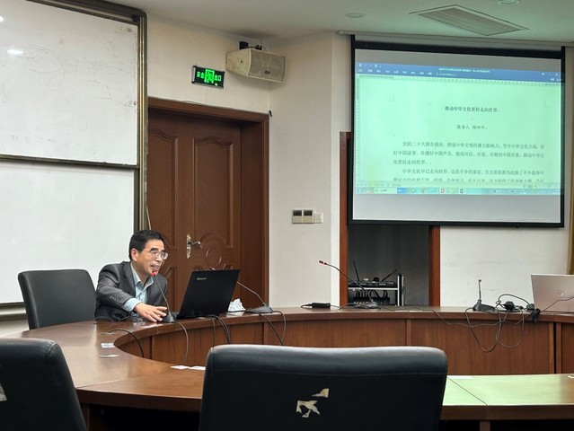 全院教职工大会结束后,学院教工第一、第二党支部组织党员教师开展了“学习贯彻党的二十大精神,推动中华文化更好走向世界”的主题党日活动,全体党员教师以线上线下相结合的方式认真聆听了学院杨四平教授做的主题报告《推动中华文化更好走向世界》。